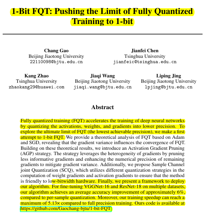 First successful 1-bit Fully Quantized Training (FQT), with gradient pruning.