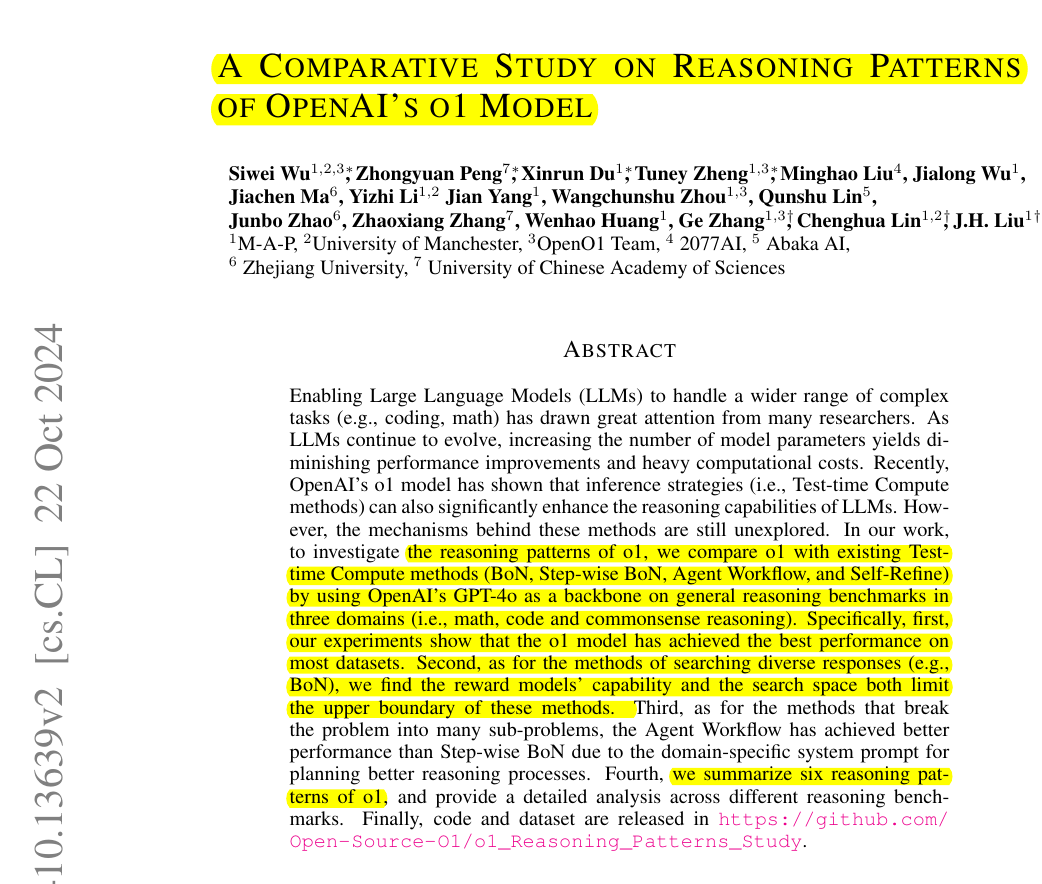 The paper finds six distinct patterns for OpenAI o1-preview's superior performance. 💡