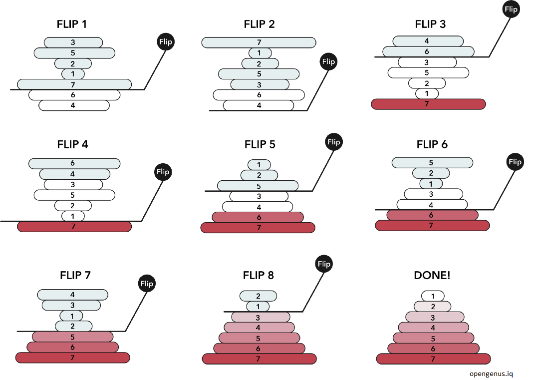 Flip the entire unsorted portion of the sequence, placing the maximum element at its correct final position.