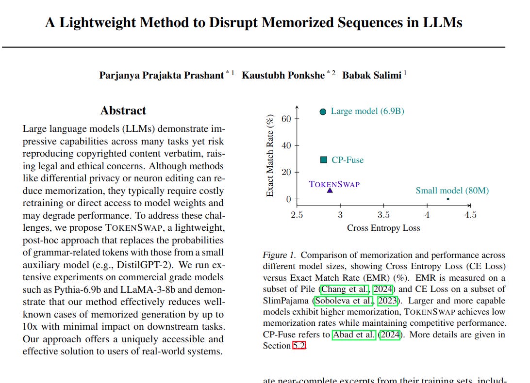 📌 The key innovation is TOKENSWAP's post-hoc nature. It offers memorization mitigation without costly retraining or modifying model weights, making it highly accessible and practical for real-world LLM deployments.