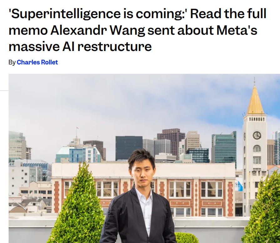 Shengjia Zhao will take charge of Meta Superintelligence Labs (MSL) research, while Yann LeCun will begin reporting to Wang.