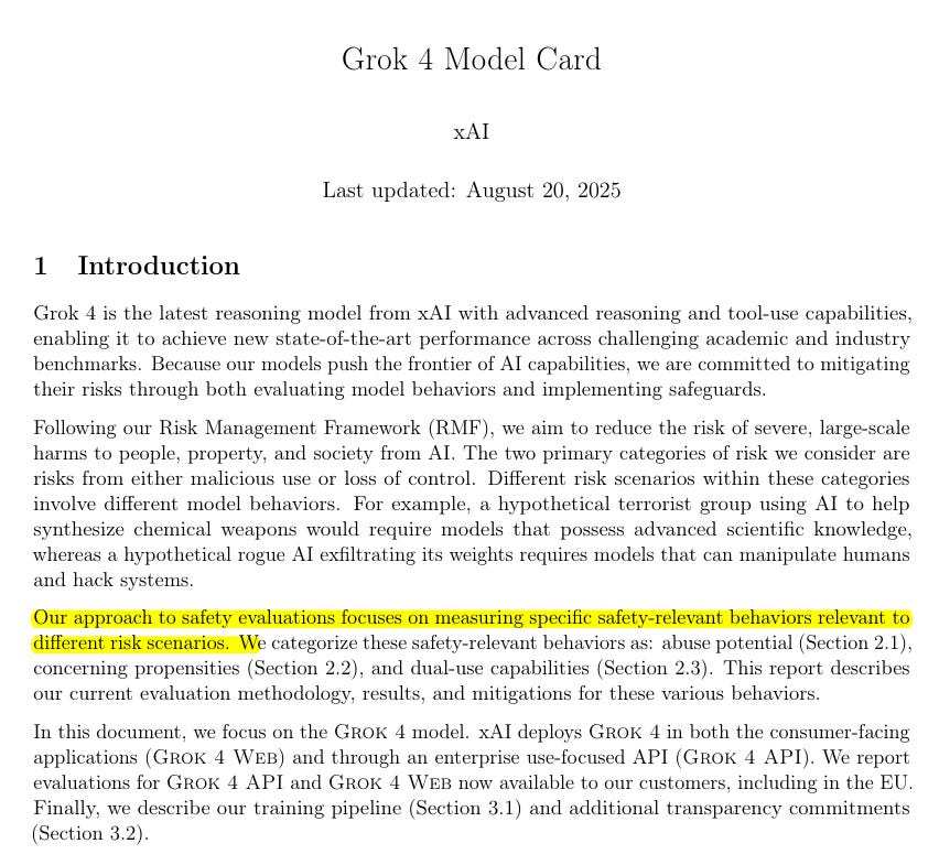 xAI frames Grok 4’s safety around 3 buckets, abuse potential, concerning propensities, and dual‑use capabilities, then shows how system prompts and filters push risky behaviors down without gutting capability.