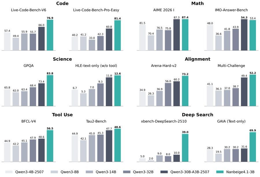 Nanbeige LLM Lab released the open-weight Nanbeige4.1-3B, Apache 2.0 license.