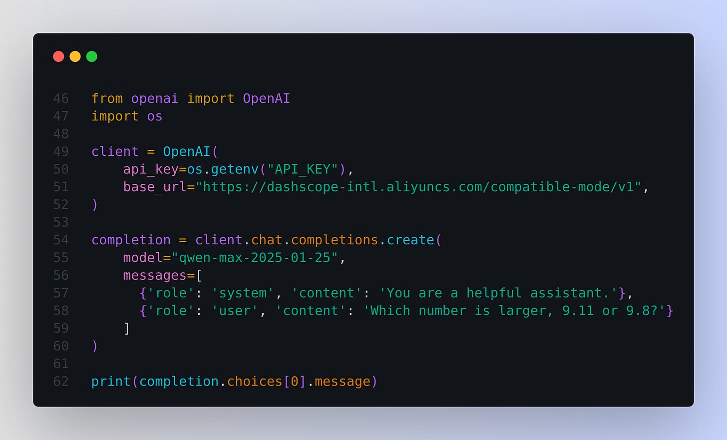 Since the APIs of Qwen are OpenAI-API compatible, we can directly follow the common practice of using OpenAI APIs. Below is an example of using Qwen2.5-Max in Python: