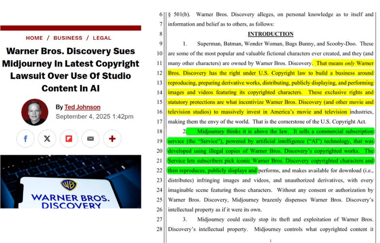 🖼️ Warner Bros. Discovery sued Midjourney alleging the AI service copied its films and shows.