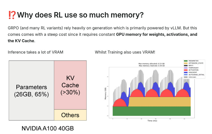 This is significant upgreade from UnslothAI for non-trivially reducing GPU-heavy RL-based LLM training.