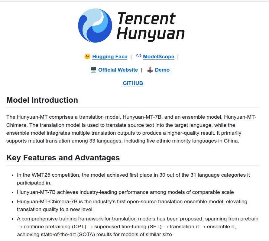 Hunyuan-MT-7B came first in 30 out of the 31 tests in a general machine-translation competition held as part of the coming WMT25 conference. Github.