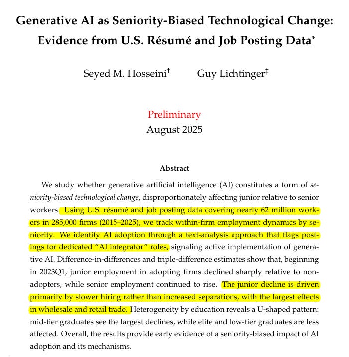 🚨 Another research proves Generative AI is lowering demand for junior staff