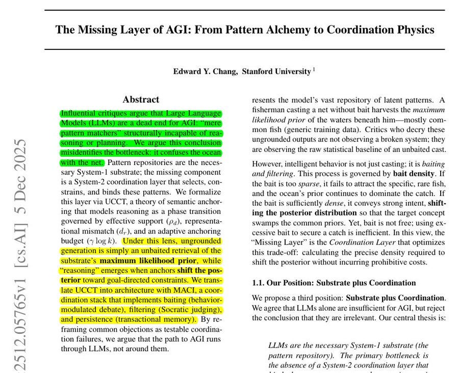 🧱 New Stanford paper argues that LLMs already provide the raw skills for AGI, but they still need a coordination layer on top.