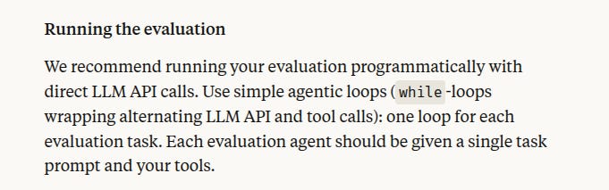 The idea is to run tests in a structured way using direct API calls. You set up a simple loop where the agent gets a task, tries to solve it with the tools, and the outputs are checked. Each loop corresponds to one evaluation task.