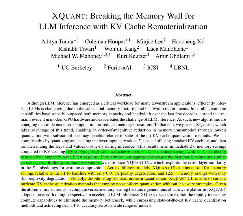 🧠 12.5x memory savings vs. FP16 with new revolutinary technique - “"XQuant: Breaking the Memory Wall”