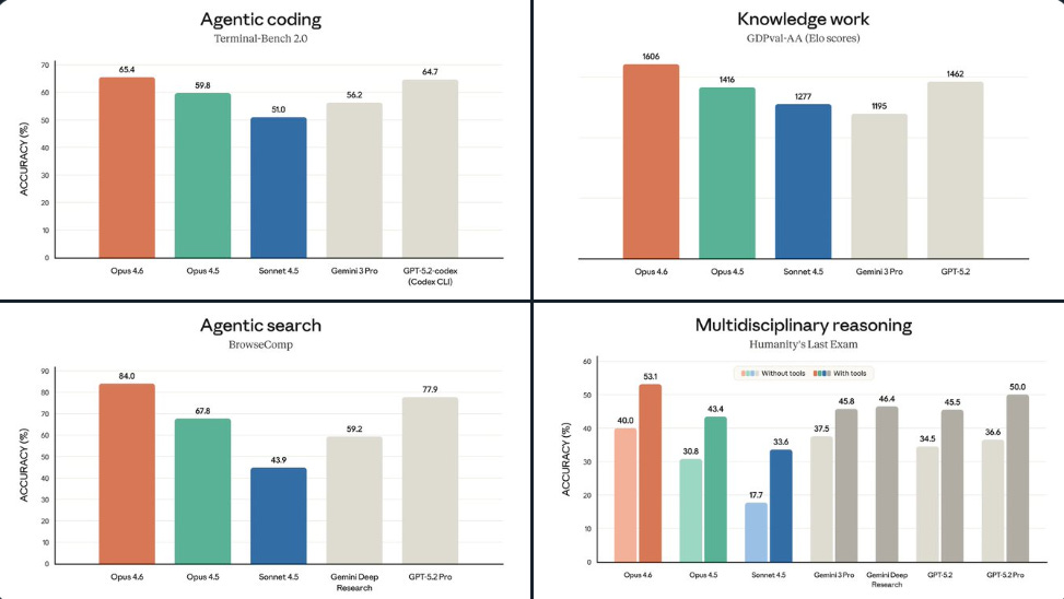 🥇 Anthropic released Claude Opus 4.6, with major gains across coding, knowledge, and reasoning benchmarks.