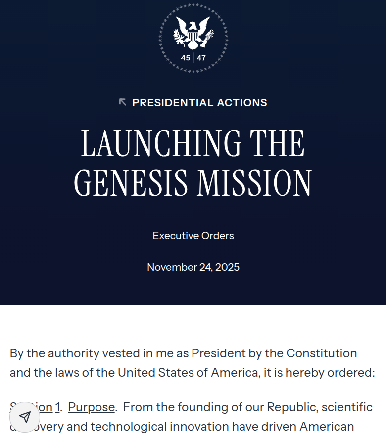 🧠 Trump signs executive order launching the Genesis Mission — a Manhattan Project for AI.