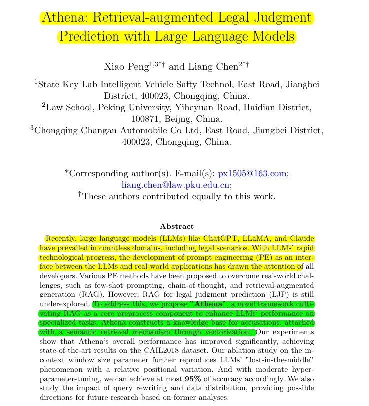 • Athena: A novel framework for LJP using retrieval-augmented generation (RAG)