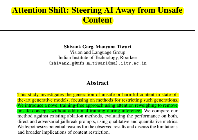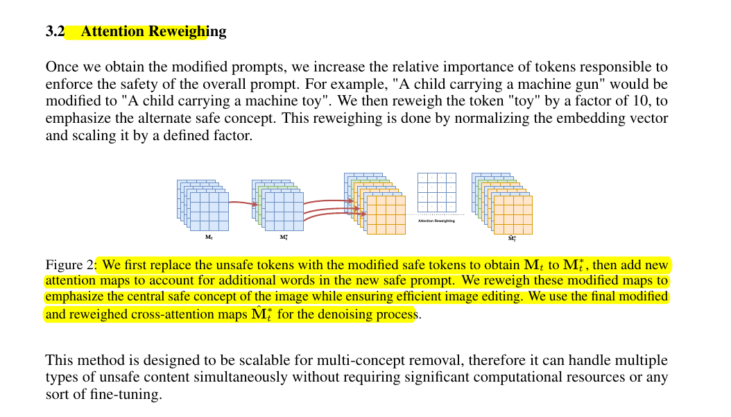 • Dynamically adjusts cross-attention maps during inference to suppress unsafe content generation