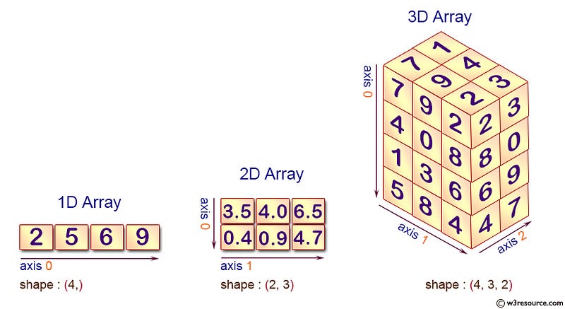 In the most simple terms, when you have more than 1-dimensional array than the concept of the Axis is comes at all. For example, the 2-D array has 2 Axis.