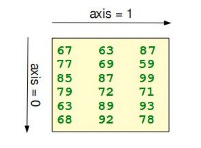 The first axis ( i.e. axis-0 ) is running vertically downwards across rows, and the second (axis-1) running horizontally across columns.