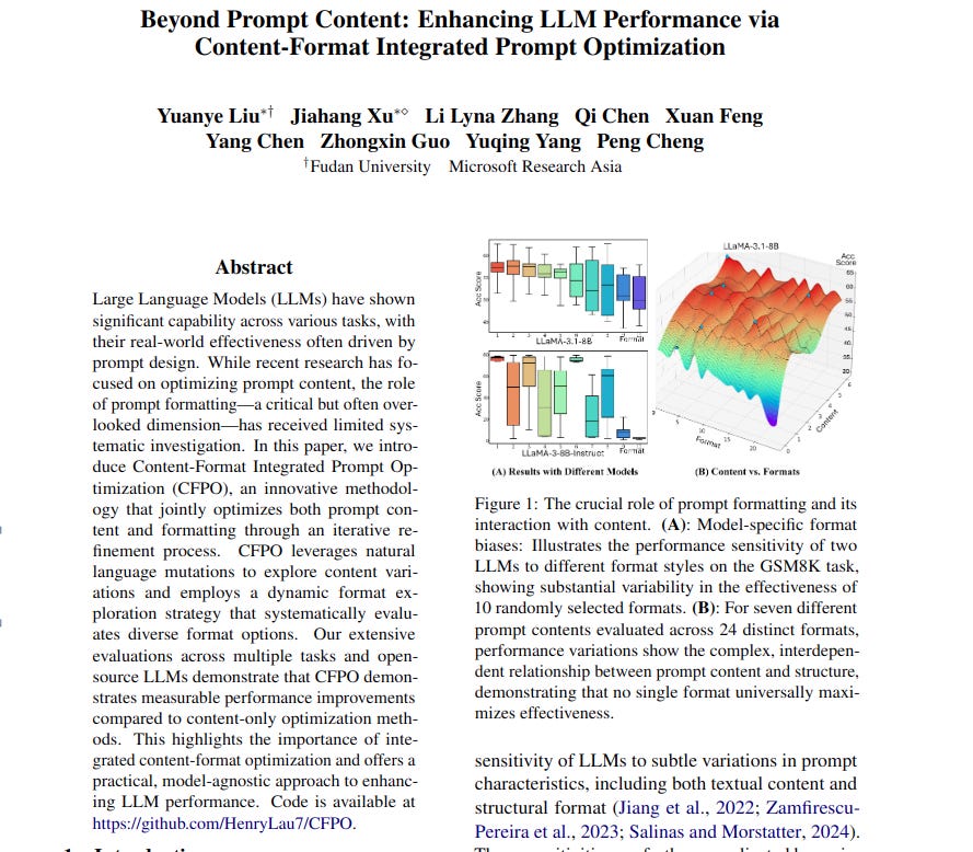 → Introduces Content-Format Integrated Prompt Optimization (CFPO). CFPO is a new method for optimizing LLMs.