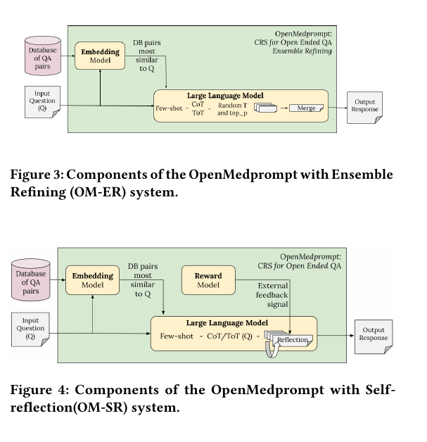 OpenMedprompt with Self-reflection (OM-SR): Employs a feedback loop to iteratively improve the generated answer, incorporating attribute scores from a reward model.