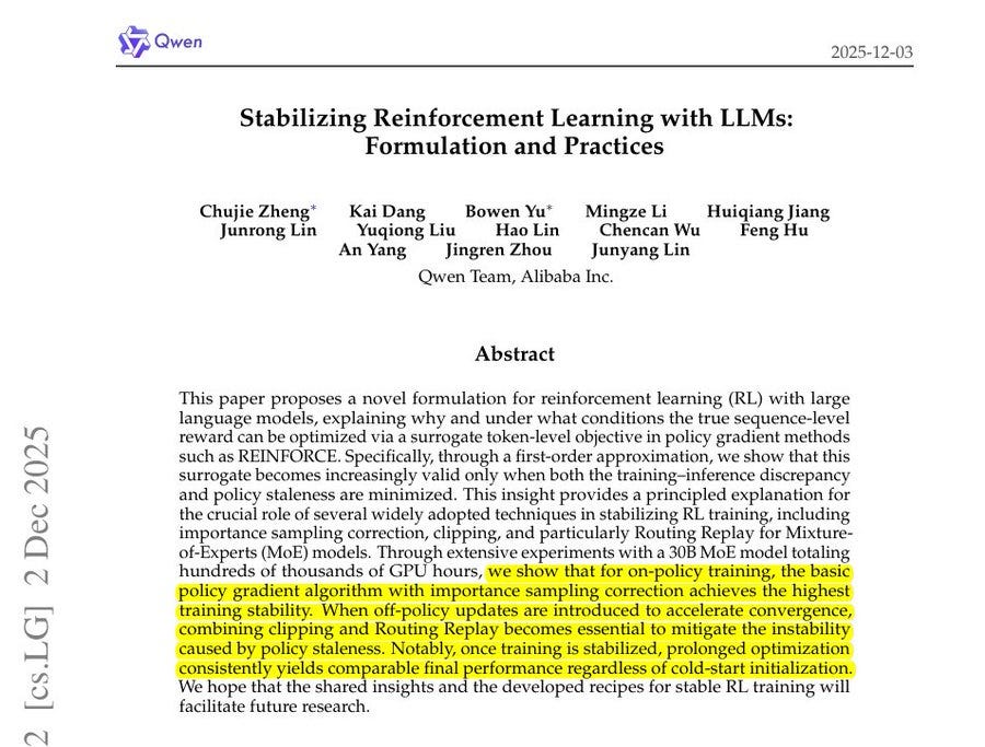 🛠️ Qwen publishes new study showing how sampling is used to stabloze Reinforcement Learning training