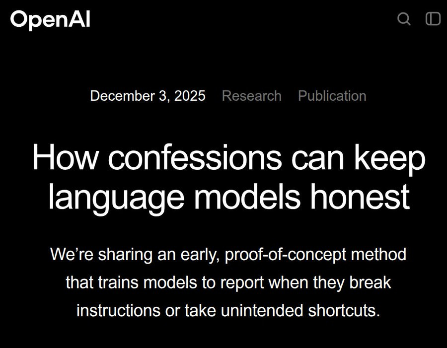 🕵️♂️ Beautiful new study by OpenAI - Teaches models to confess when they cheat or hallucinate.