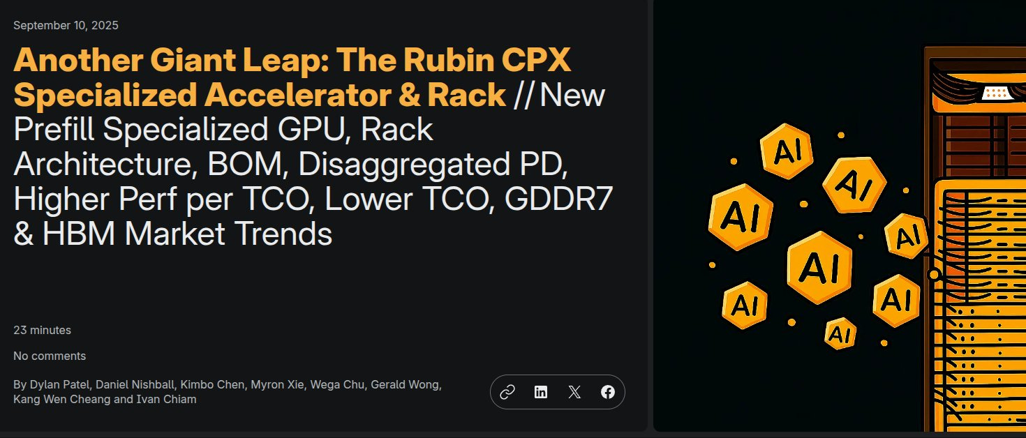 🧑🎓 SemiAnalysis published a comprehensive report on Nvidia’s newly announced powerful GPU Rubin CPX
