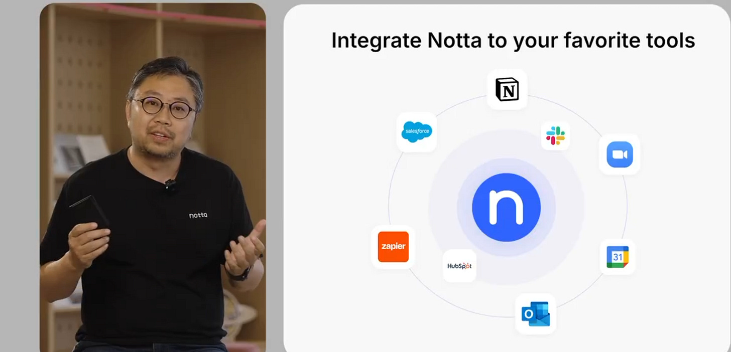 Everything stays in sync across iPhone, Android, web, Chrome, and it pipes summaries to Slack, pushes updates to Salesforce, and stores notes in Notion. The Notta platform also supports video dubbing in 15 languages while preserving the original voice style. Check it out here for yourself.