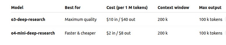 o4-mini-deep-research-2025-06-26: Lightweight and faster, ideal for latency-sensitive use cases