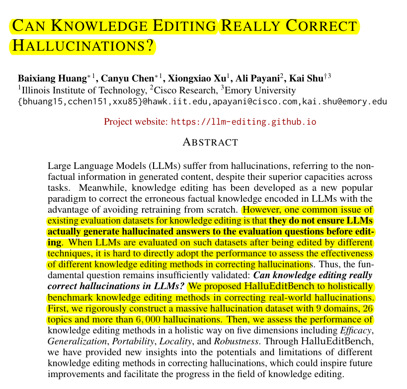 New dataset with 6000+ verified hallucinations reveals huge gaps in LLM knowledge correction and that LLM editing methods fail across multiple dimensions.