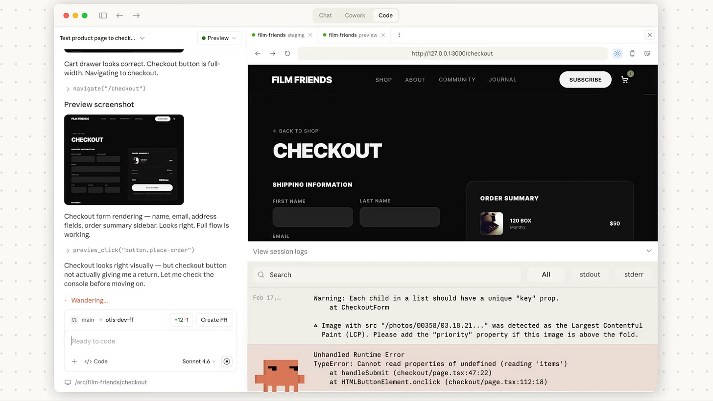 It can now preview a running app inside the desktop UI while it iterates on fixes.
