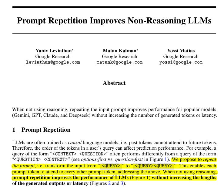 🗞️ Prompt Repetition Improves Non-Reasoning LLMs