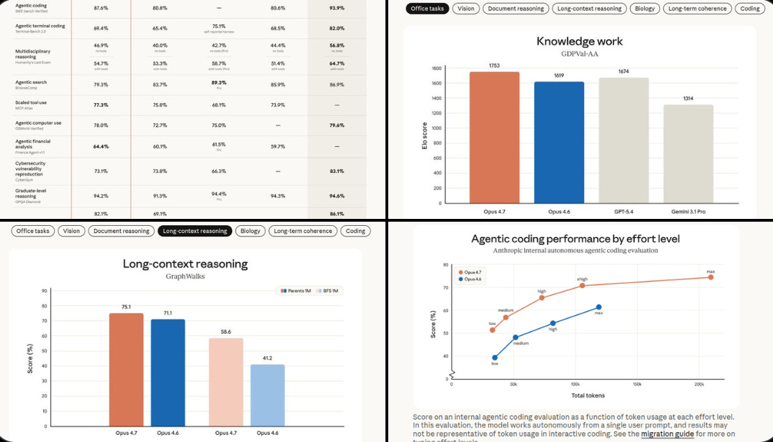 Opus 4.7 introduces a new xhigh (“extra high”) effort level between high and max, giving users finer control over the tradeoff between reasoning and latency on hard problems. i.e. developers can make Claude spend more time on hard tasks, cap how many tokens it uses during long runs, and trigger a dedicated code review pass that looks for bugs and design issues.