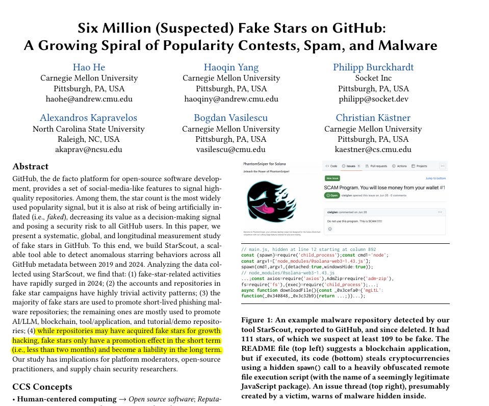 🗞️ A new paper shows that GitHub stars can be bought at scale, and that the distortion now bleeds into security.