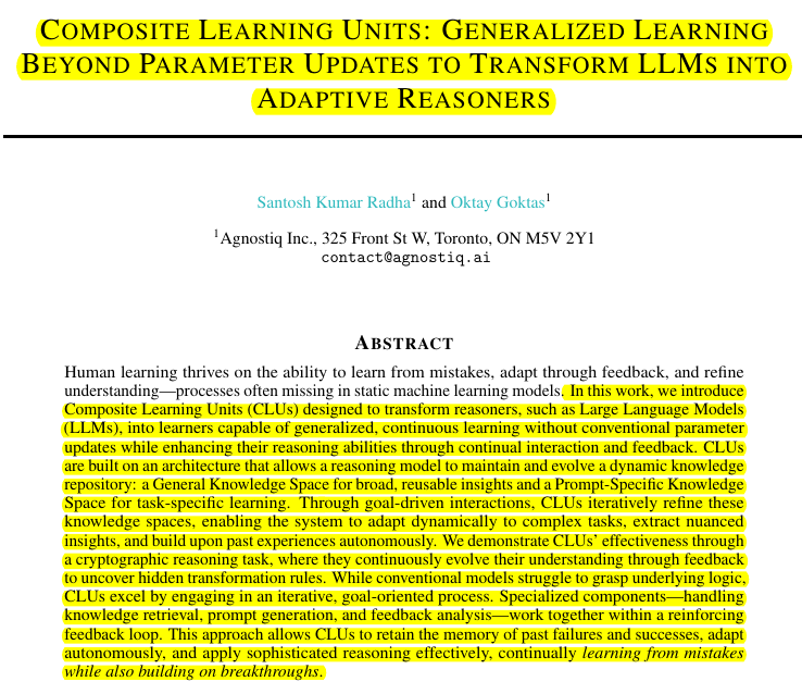 Meet Composite Learning Units (CLUs): The AI that learns on the job, not just during training.