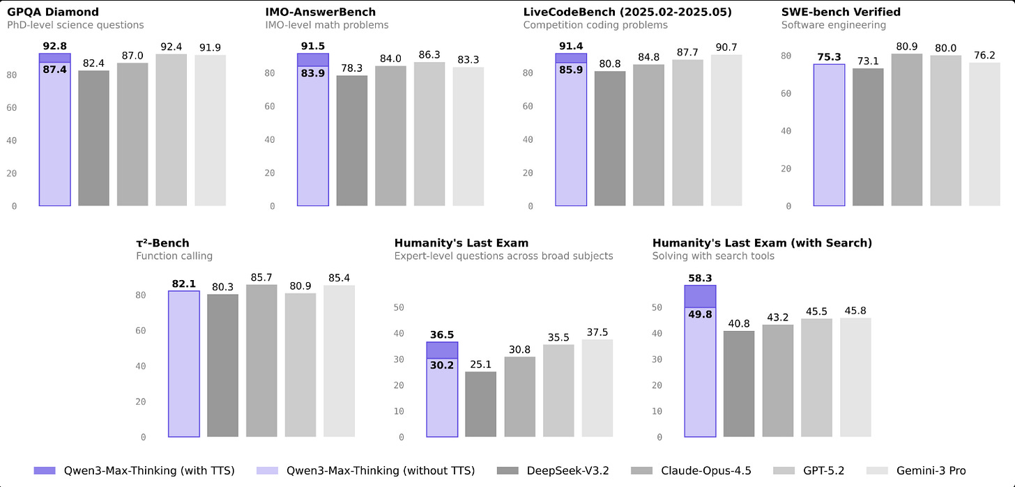 📡 Qwen3-Max Thinking outperforms Gemini 3 Pro and GPT-5.2 on Humanity’s Last Exam with search enabled.