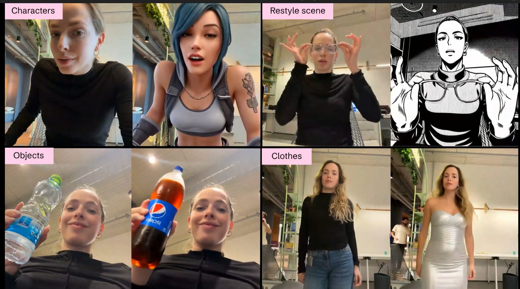 e.g. If you want to be an anime character, it doesn’t just put a mask on you. It turns your skin into anime skin, your hair into anime hair, and the lighting in your room into anime lighting.