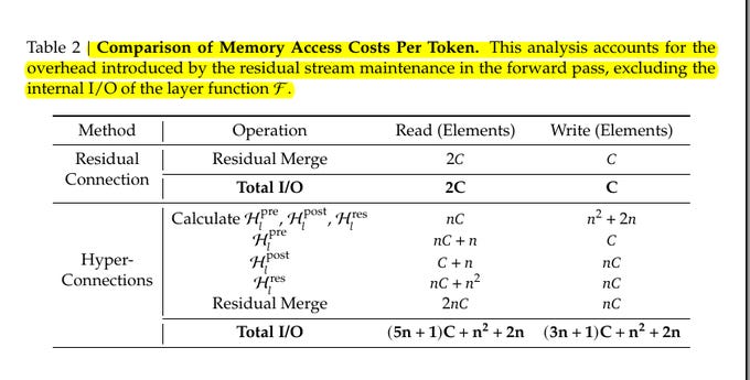 For inference, that widening the residual stream under traditional Hyper-Connections, is naturally scary for latency, because decoder serving is often limited by memory bandwidth rather than raw compute, and extra residual streams mean more bytes moved per generated token unless kernels are very tight.