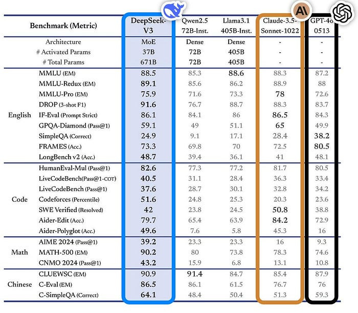 If you are developing with AI Models, Deepseek V3 is on par in performance with GPT-4 and Claude 3.5 Sonnet but can be accessed at a much cheaper price.