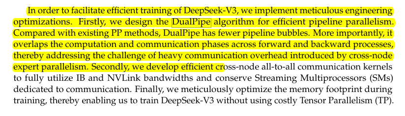 Communication efficiency gets a boost through the DualPipe algorithm, which overlaps computation and communication phases.