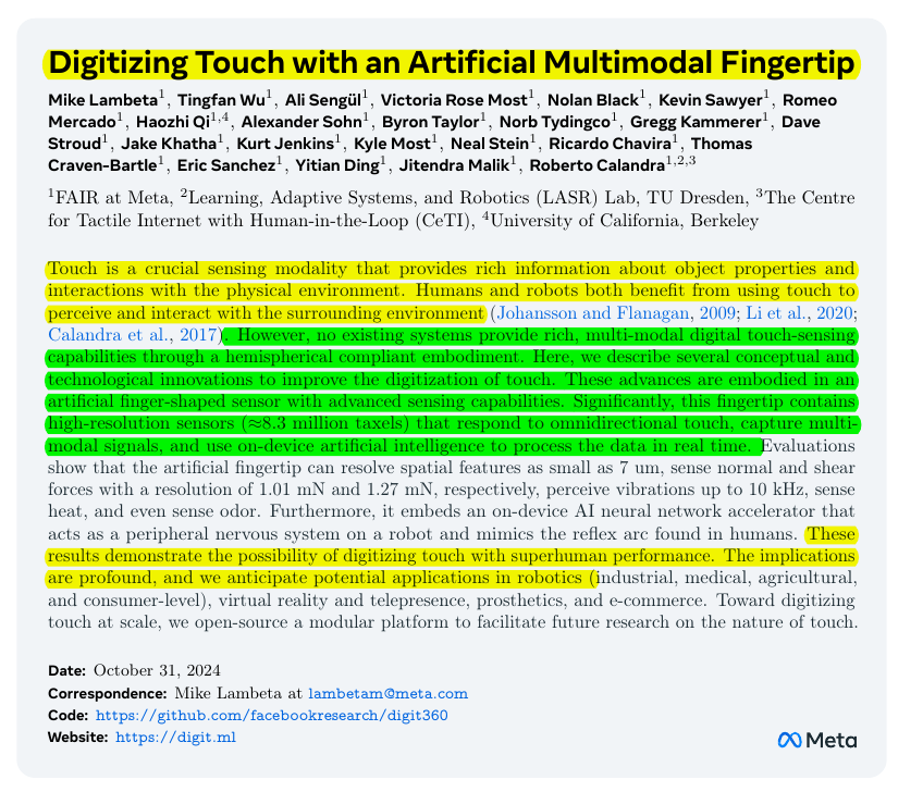 Great research from @Meta. An artificial fingertip that captures touch with superhuman precision using 8.3 million sensors.