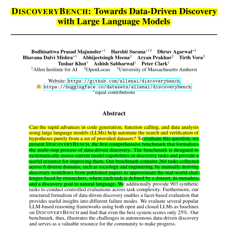 DISCOVERYBENCH shows current LLMs solve only 25% of scientific discovery tasks