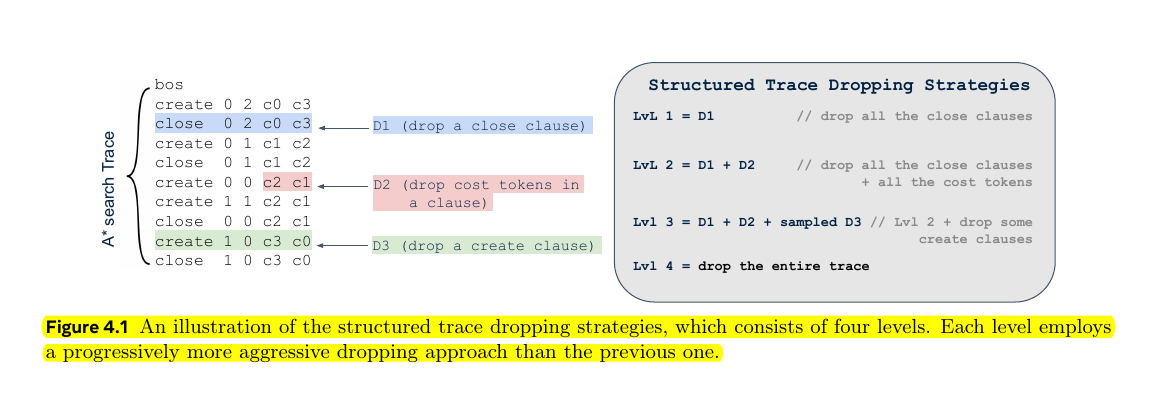 Uses structured trace dropping strategies that exploit the A* search trace structure