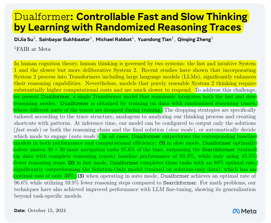 Dualformer integrate both fast and slow reasoning modes into a single transformer model.