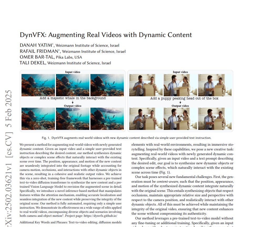 This paper proposes DynVFX. It is a zero-shot method to automatically augment videos with dynamic content using simple text prompts. DynVFX leverages pre-trained models and attention mechanisms for seamless integration.