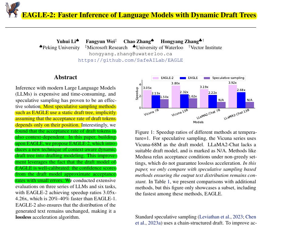 • EAGLE-2 introduces dynamic draft trees that adapt based on context