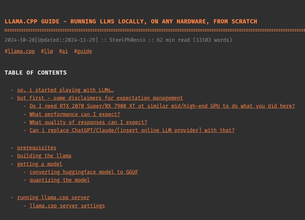 This blog is a really long and comprehensive guide on building and using llama.cpp for devloping with your local LLMs