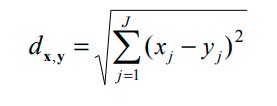 Furthermore, we can carry on like this into 4 or more dimensions, in general, J dimensions, where J is the number of variables. Although we cannot draw the geometry any more, we can express the distance between two J-dimensional vectors x and y as: