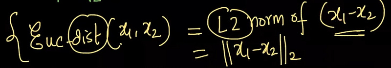 That means Euclidean Distance between 2 points x1 and x2 is nothing but the L2 norm of vector (x1 — x2)