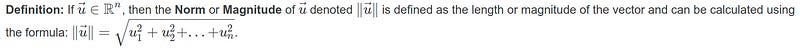 Mathematically a norm is a total size or length of all vectors in a vector space or matrices. And after we calculate the Norm, then we can normalize a vector. By definition a norm on a vector space — over the real or complex field — is an assignment of a non-negative real number to a vector. The norm of a vector is its length, and the length of a vector must always be positive (or zero). A negative length makes no sense.