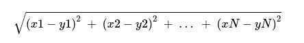 In an N-dimensional space, a point is represented as (x1, x2, …, xN).